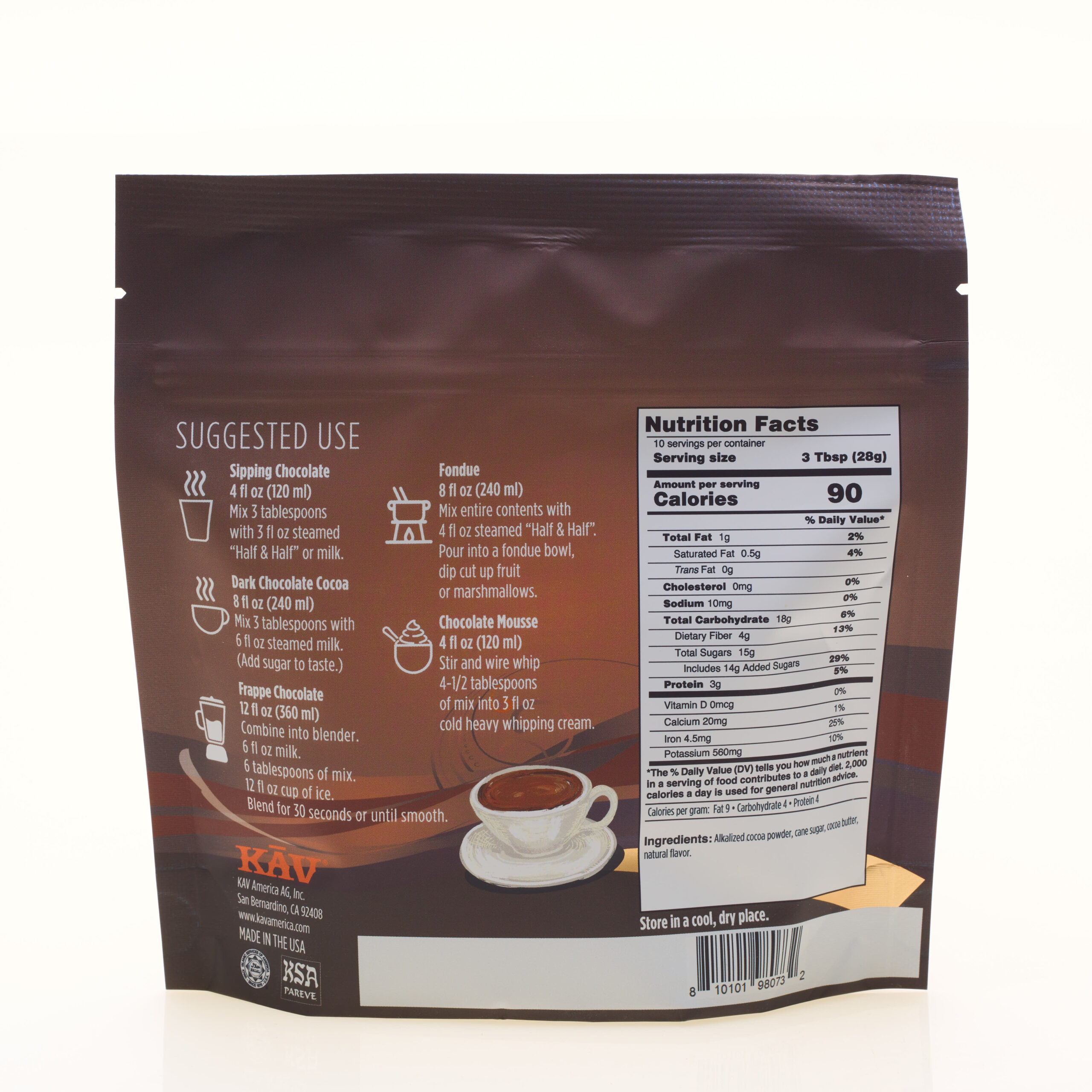 Discover the essence of cozy indulgence with our Sipping Chocolate. This drink mix is designed to be savored slowly, letting each sip transport you to a state of warm bliss. Crafted for the modern connoisseur, it offers a creamy, rich taste that elevates your comfort experience. Whether you’re wrapped in a blanket on a chilly evening or seeking a moment of solace in your busy day, our Sipping Chocolate provides a luxurious escape, offering you the freedom to create your perfect cozy moment.It’s also a perfect cocoa for exploring your culinary creativity –add cinnamon and cayenne to warm the palette, add lavender syrup to calm the soul –the choice is yours.That sense of choice and adventure doesn’t have to be limited to drinks, either: blend this mix into a chocolate mousse or dress up dinner and dessert with this at the heart of your fondue.